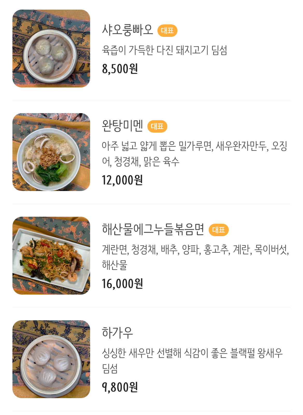 메뉴판 스캔 후 우육탕미엔과 완탕미멘 그리고 샤오롱바오를 주문했다
