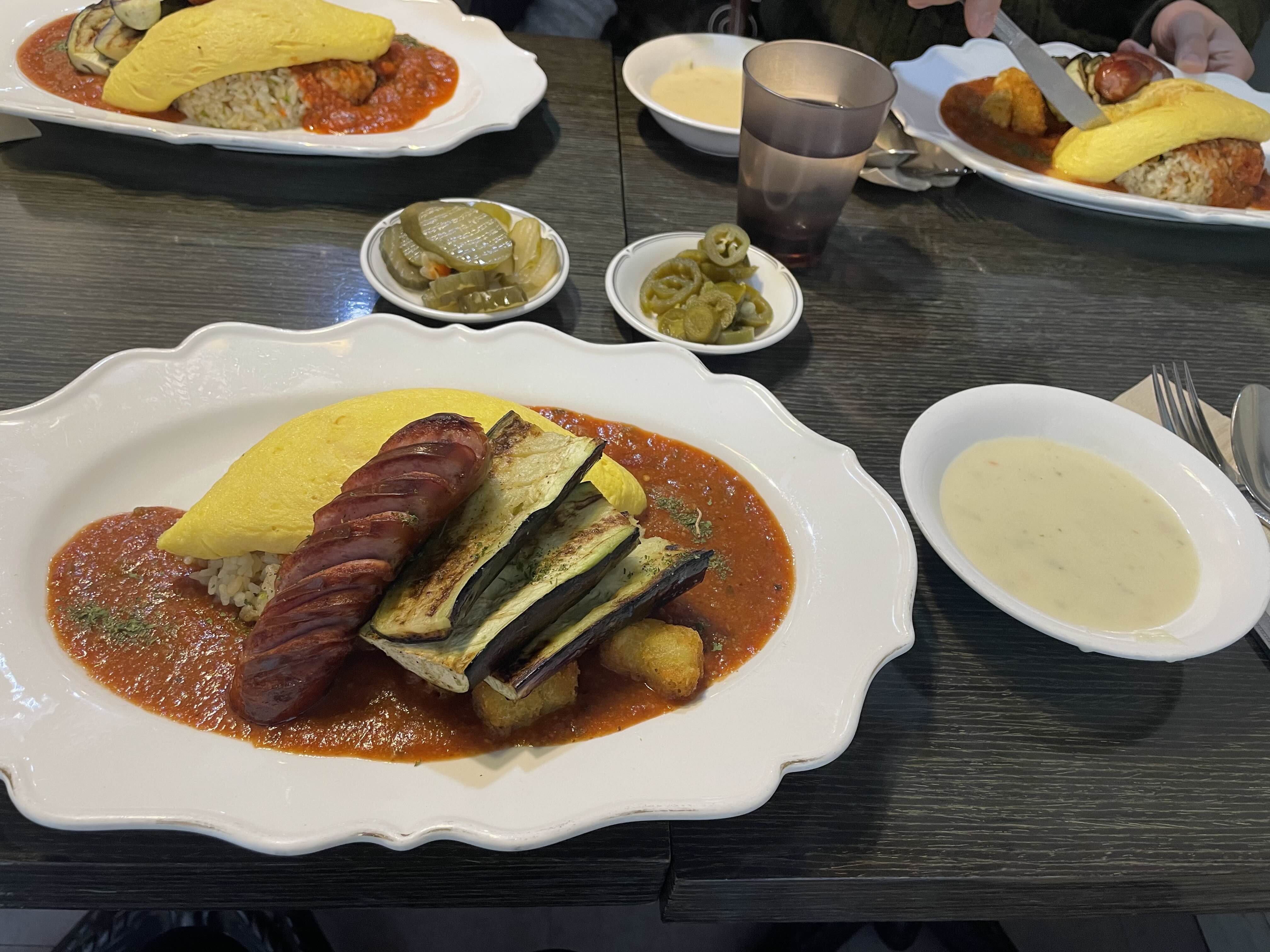오믈렛 배를 가르니 찐한 계란 진액이 좌르르.. 맛은 좋은데 반 정도 먹으니 느끼… 해서 남겼다 어쩌다 한 번쯤 정도 먹을만한 맛 😊