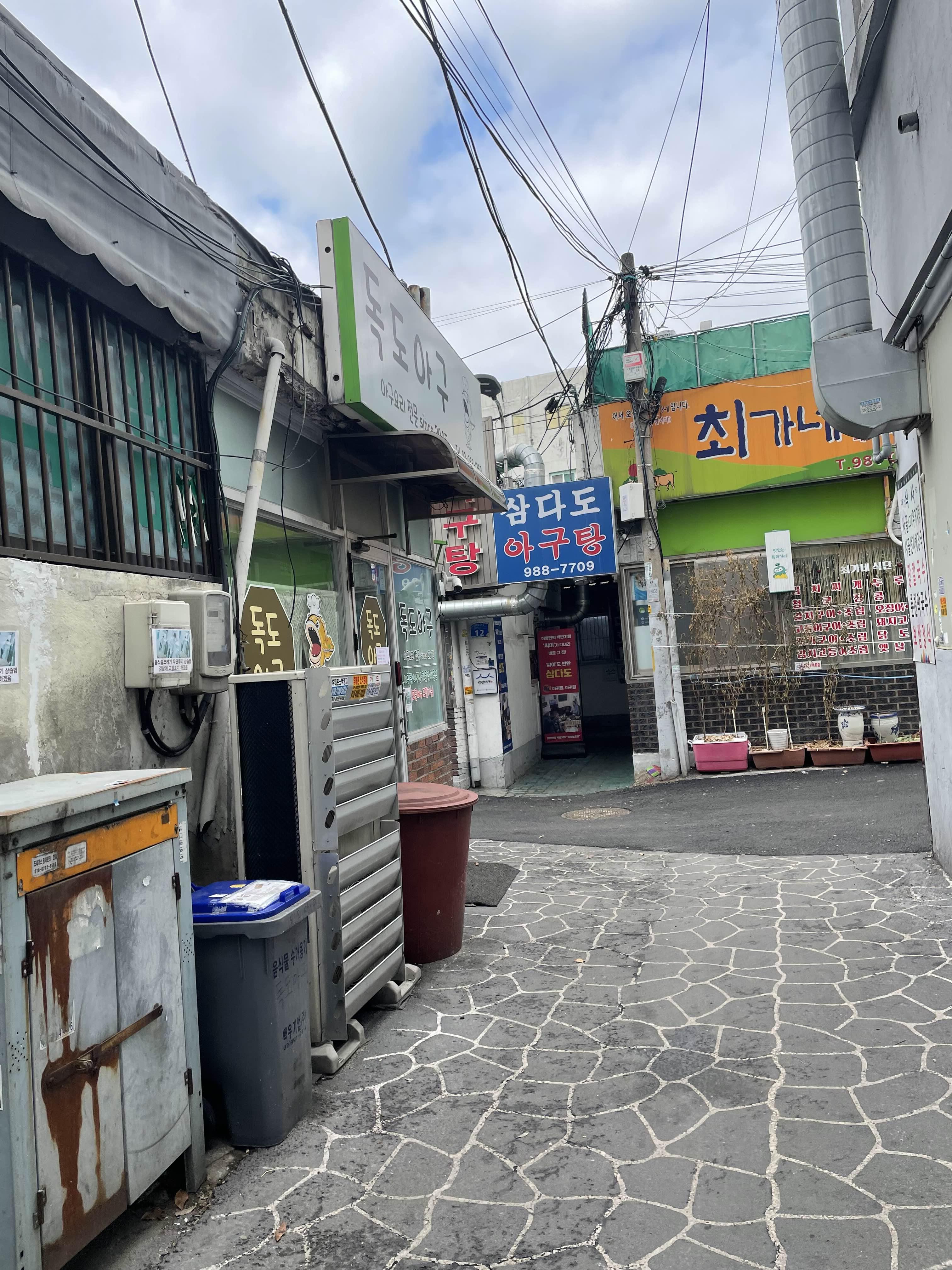 맛집 스멜의 허름 가게가 즐비한 곳 사이로 요런 좁은 주차장이 있음 🚐 운 좋으면 주차가능