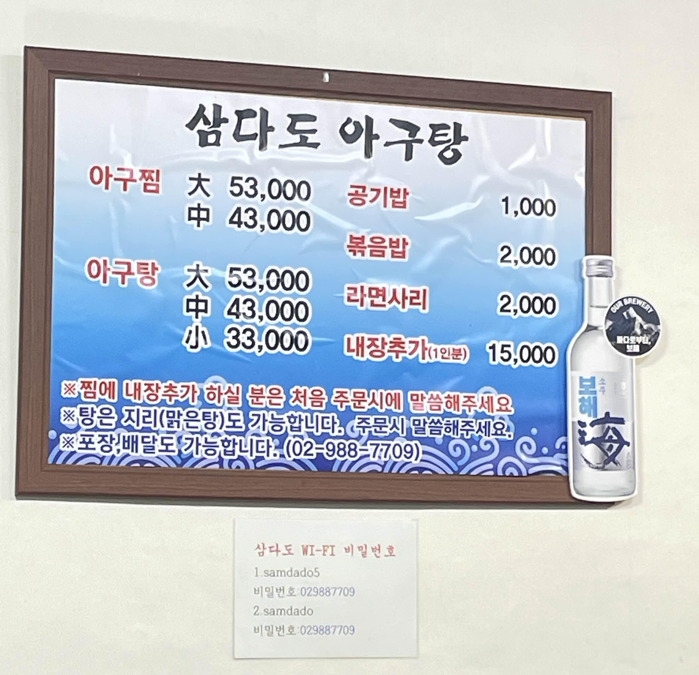 메뉴판과 와피 비번은 참고