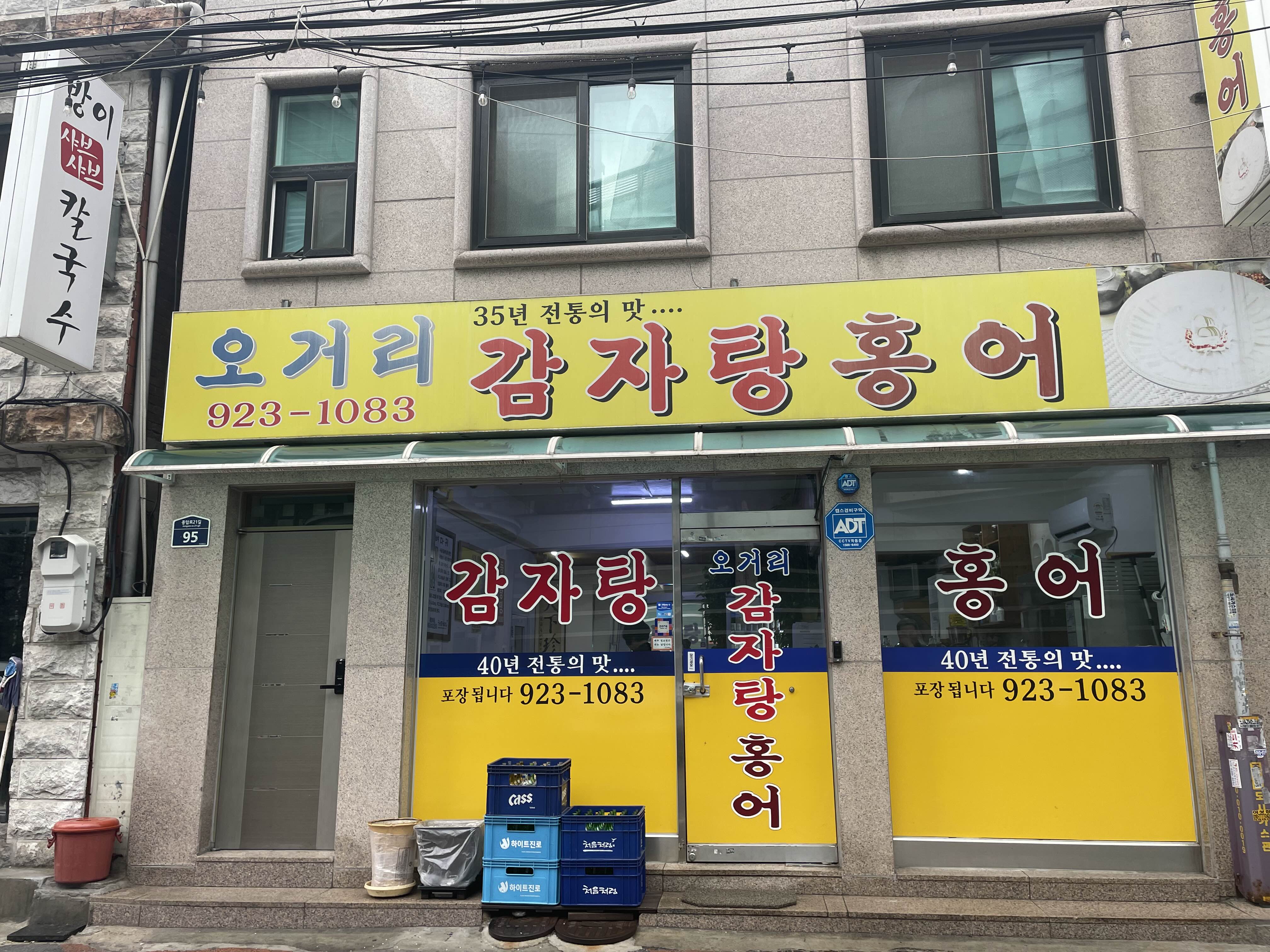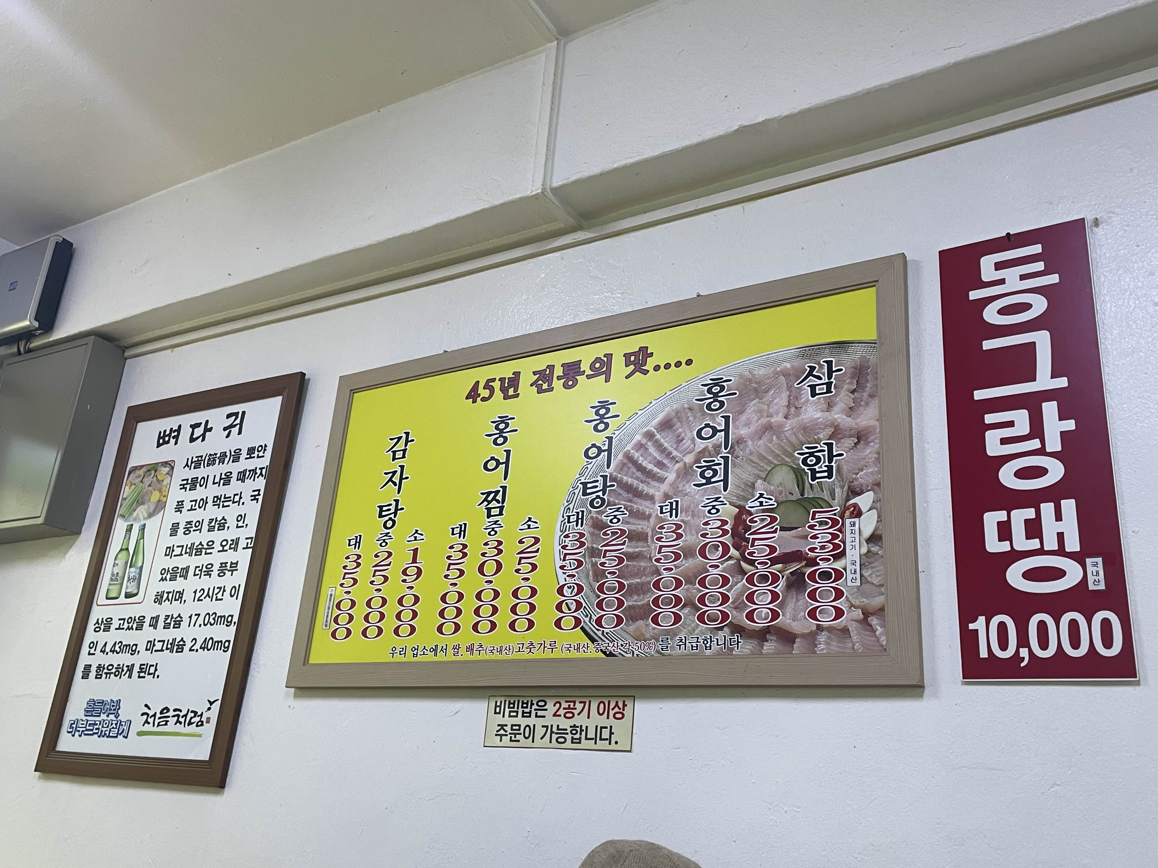 즐비한 상점 사이에 노란 간판이 눈에 들어왔다 친정 엄마가 떠오르는 홍어 메뉴도 있고