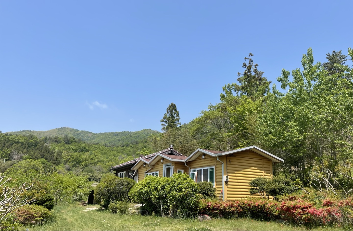 담날 우리끼리 차려먹은 아침 밥도 자연경관을 벗 삼아 먹으니 너무 행복했다 위 사진은 지난 여름에 찍은 컷, 겨울도 나름 멋있지만 더 화사한 사진으로 첸지