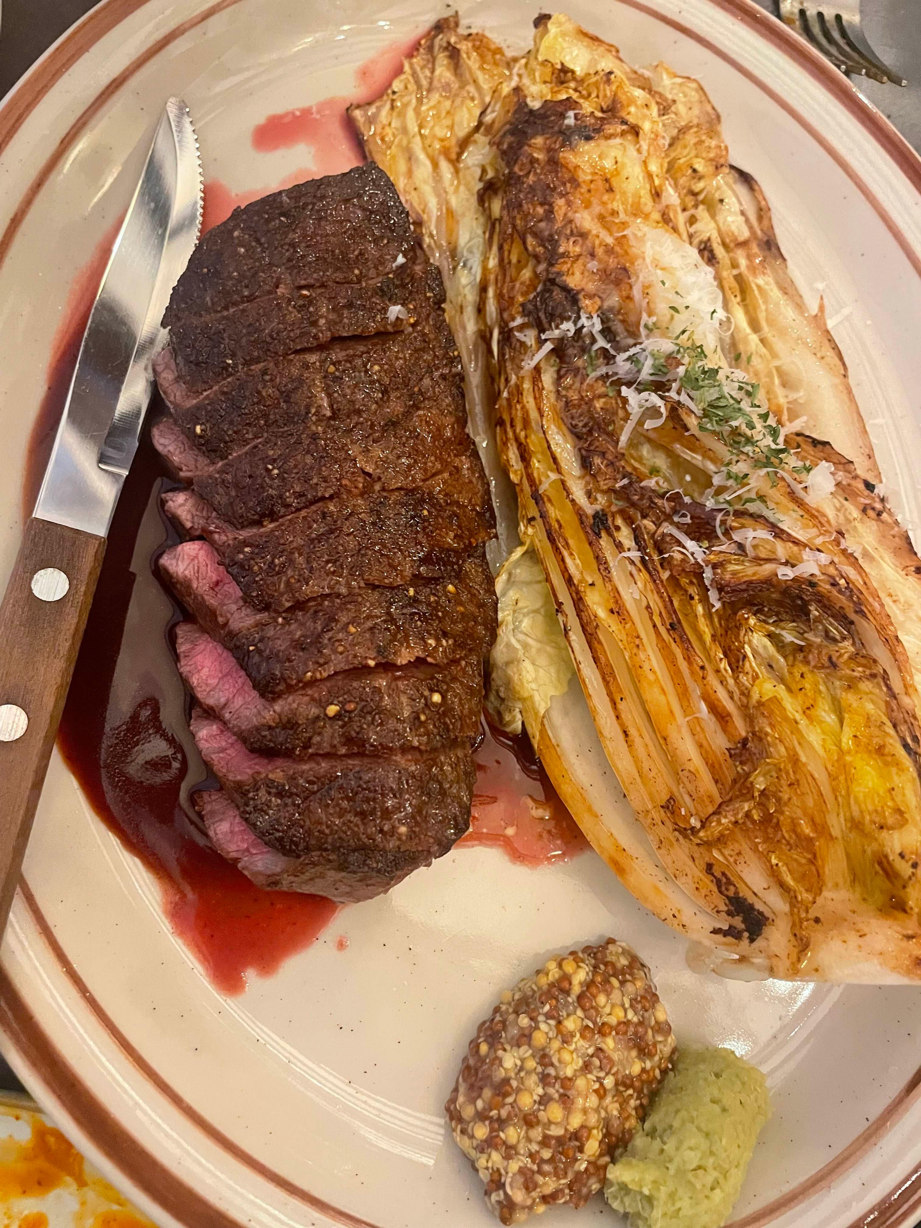 마지막에 나온 부챗살 스테이크... 스테이크가 제일 먼저 나왔어야 하는데...
